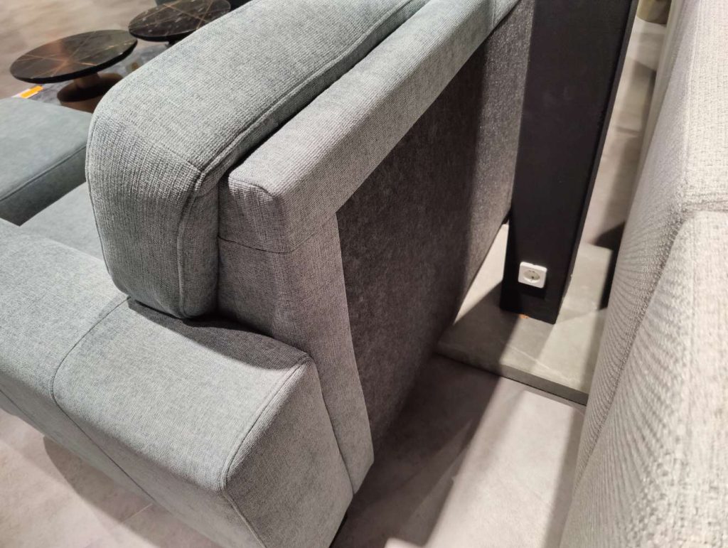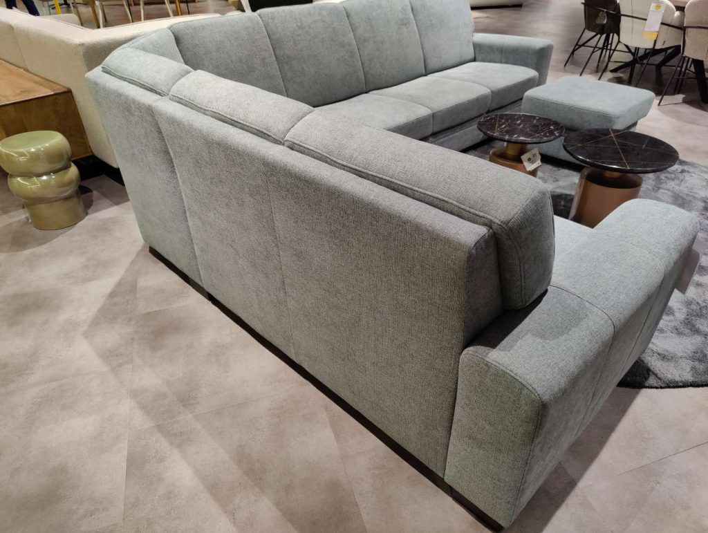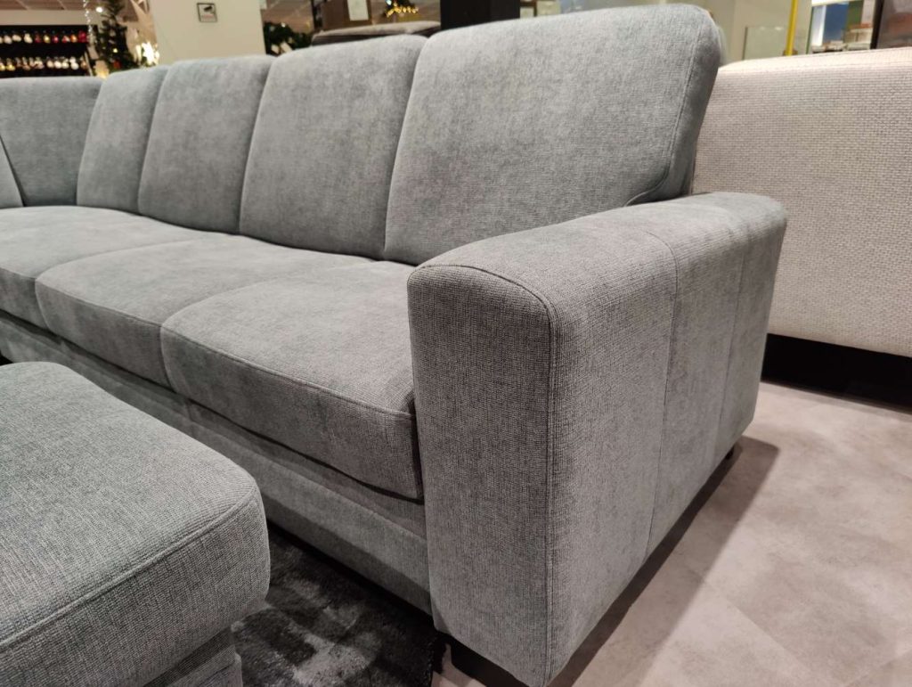 Die Sitzqualität des Sofas wird durch einen hochwertigen Federkern gewährleistet, der für optimalen Sitzkomfort sorgt und langanhaltende Stabilität verspricht. Der Rücken ist mit Nesselstoff bezogen und bietet eine angenehme Unterstützung. Die schwarzen Metallfüße verleihen dem Sofa nicht nur einen modernen Touch, sondern garantieren auch eine stabile und zuverlässige Basis. Dieses Ecksofa, als Ausstellungsware angeboten, vereint modernes Design mit hoher Funktionalität und ist somit ein idealer Mittelpunkt für Ihr Wohnzimmer.