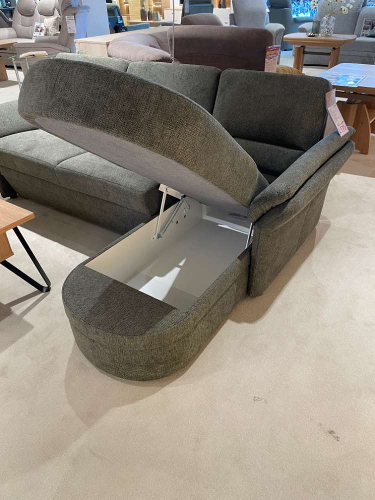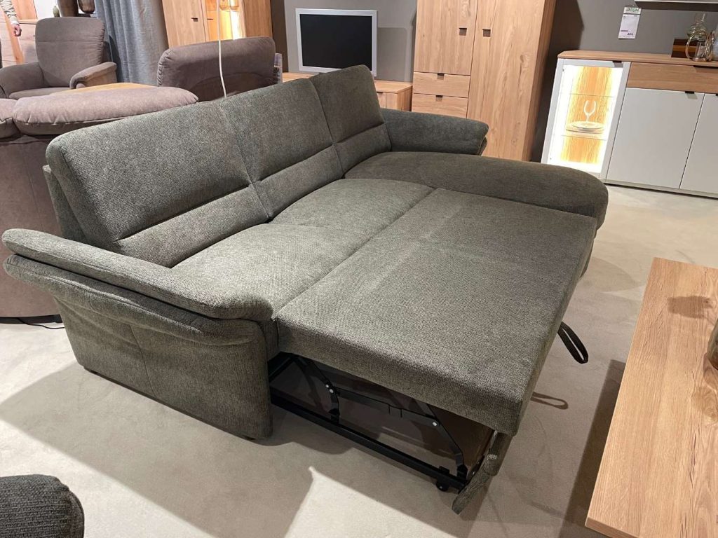 BemerkungDiese stilvolle Elementgruppe in der faszinierenden Farbe Mito Hunter besticht durch ihre Vielseitigkeit und Funktionalität. Perfekt für jedes Wohnzimmer, bietet sie eine ideale Lösung für stilbewusste Einrichter, die auf Qualität und Komfort Wert legen. Trotz ihrer kompakten Stellmaße von 225x160 cm überzeugt die Garnitur durch großzügige Funktionen. Die klappbaren Armlehnen und die komfortable Schlaffunktion mit Echtauszug verwandeln sie mühelos in eine gemütliche Schlafmöglichkeit, während der aufklappbare Bettkasten zusätzlichen Stauraum zur Verfügung stellt. Der dazugehörige Sessel, mit den Maßen 96x86x88 cm, komplettiert das Ensemble und verspricht Komfort auf höchstem Niveau.