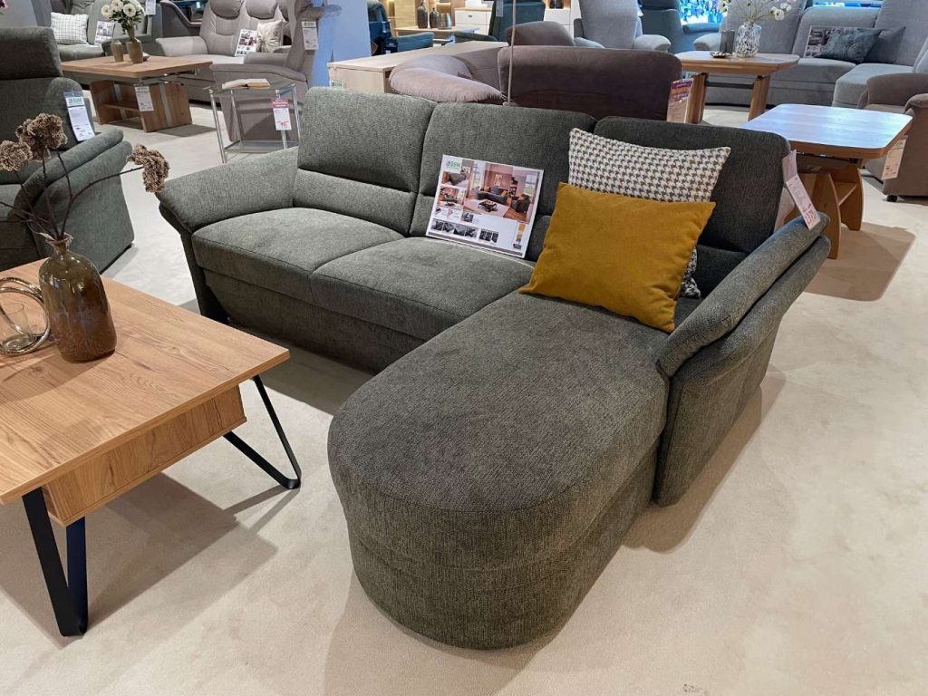 Diese Ausstellungware wird durch Kopfstützen optimiert, die maximale Entspannung garantieren. Dezente Möbelgleiter von etwa 3 cm sorgen für sanfte Beweglichkeit und schonen zugleich Ihren Boden. Stilvolle Akzente setzen die mitgelieferten Kissen: Das Kissen in Peak Kiwi (50x50 cm) und ein weiteres in Multicolor Mais (40x50 cm) runden das Gesamtbild ab und fügen Farbtupfer hinzu, die das Design lebendig und einladend machen. Diese Elementgruppe stellt eine perfekte Verbindung aus Design und Funktionalität dar und wird zum Highlight Ihres Wohnraums.