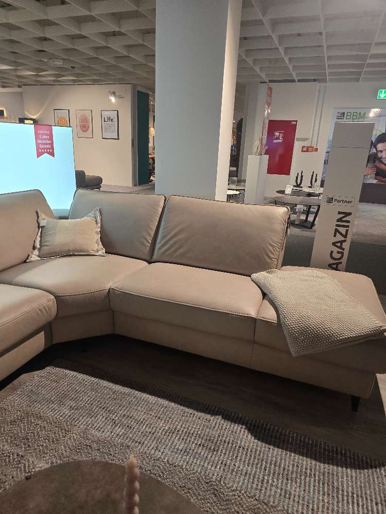 BemerkungDiese eindrucksvolle Wohnlandschaft als Austellungsware vereint Komfort und Stil in Ihrem Wohnraum. Mit einem raffinierten Design und einer geschmackvollen Farbgebung wird sie zum Mittelpunkt jeder gemütlichen Umgebung. Das großzügige Platzangebot lädt zum Entspannen und Verweilen ein, während die hochwertige Polsterung hohen Sitzkomfort gewährleistet. Die abgerundeten Formen und der durchdachte Aufbau machen die Wohnlandschaft nicht nur zu einem Funktionselement, sondern auch zu einem ästhetisch ansprechenden Möbelstück. Als Ausstellungsstück überzeugt sie mit kleinen aber kaum wahrnehmbaren Nutzungsspuren, die ihren Charme unterstreichen und dennoch ein hervorragendes Preis-Leistungs-Verhältnis bieten. Ob für gesellige Zusammenkünfte oder entspannte Stunden allein – diese Wohnlandschaft passt sich perfekt Ihren Bedürfnissen an und bringt ein Gefühl von Modernität und Eleganz in Ihr Zuhause.