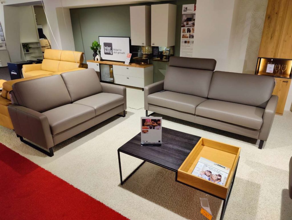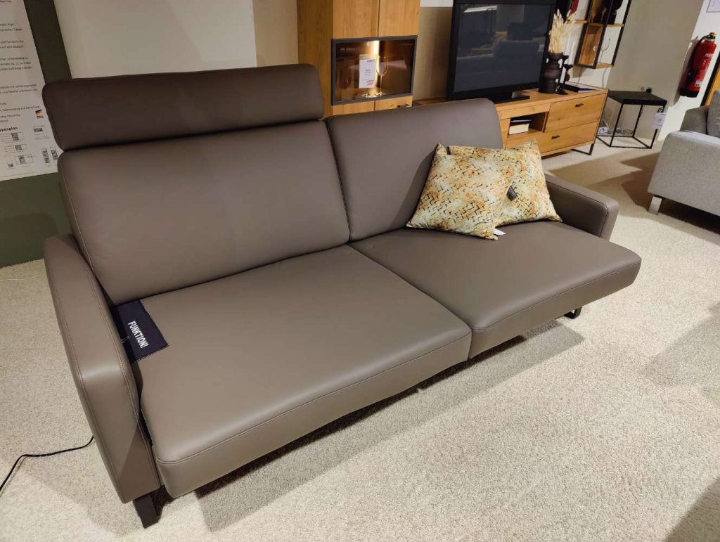 Die Sitzgarnitur besteht aus einem großzügigen 3-Sitzer mit einer Breite von 202 cm und einem kompakten 2,5-Sitzer mit 162 cm Breite. Beide Teile der Garnitur beinhalten eine motorisierte Sitzauszug-Funktion, die höchsten Komfort und Anpassungsfähigkeit gewährleistet. Zudem sind die Rücken der Möbel echt verarbeitet, was sowohl ästhetisch ansprechend ist als auch für zusätzliche Stabilität sorgt. Eine verstellbare Kopfstütze bietet zusätzlichen Komfort und unterstützt optimal bei längerem Sitzen.
