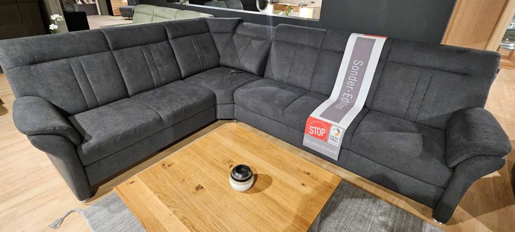 Bemerkung Erleben Sie stilvolle Eleganz und flexiblen Komfort mit unserer hochwertigen Couchgarnitur in einem modernen Miro-Grau. Gefertigt aus weicher Microfaser fühlt sich diese Couch nicht nur angenehm auf der Haut an, sondern ist auch pflegeleicht und langlebig. Dank des metallenen Fußgestells wirkt sie nicht nur stabil, sondern verleiht Ihrem Raum auch einen Hauch von zeitgenössischem Chic. Diese Couchgarnitur ist eine Ausstellungsware, die raffinierte Funktionalität mit ästhetischem Design kombiniert. Der 2-Sitzer mit Armlehne links und Bettkasten bietet zusätzlichen Stauraum, während die Trapezecke mit zwei Relaxrücken höchsten Sitzkomfort ermöglicht. Ein besonderes Highlight ist das 3er Element, welches mit einem eleganten Trapezquerschläger endet und durch die Armlehne rechts symmetrisch abgeschlossen wird. Mit großzügigen Maßen von 248x306 sowie einer Tiefe von 98 cm bietet diese Couchgarnitur ausreichend Platz für gemütliche Stunden allein oder mit der Familie und Freunden.