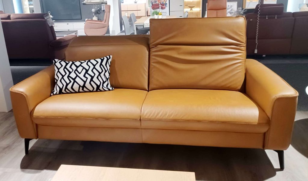 BemerkungDiese elegante Couchgarnitur kombiniert zeitloses Design mit hochwertigen Materialien und durchdachter Funktionalität. Die Garnitur, gefertigt aus echtem Leder in der stilvollen Farbe "Cloudy Saddle", verleiht jedem Raum einen Hauch von Luxus und Komfort. Mit der Möglichkeit, die Kopfpolsterverstellung individuell anzupassen, bietet sie optimalen Sitzkomfort, sei es beim gemütlichen Lesen oder entspannten Fernsehen. Die Sitzplätze sind mit einem robusten Federkern ausgestattet, der für beständige Unterstützung und Langlebigkeit sorgt.