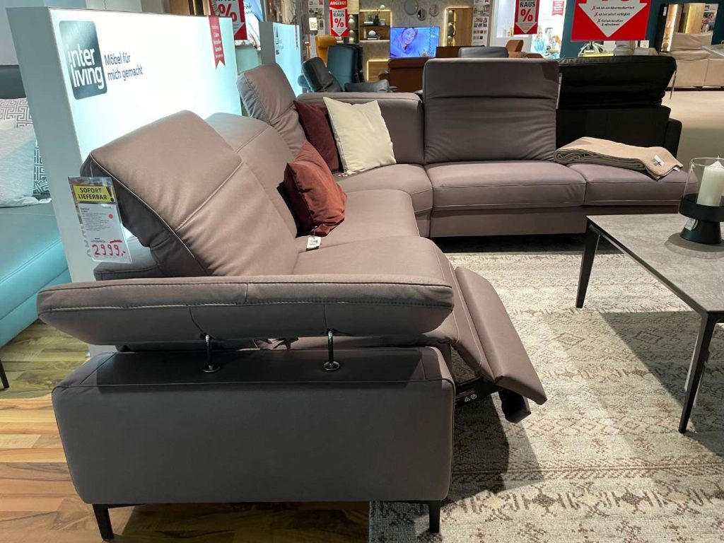 Bemerkung Diese beeindruckende Polstergarnitur von HUKLA vereint Luxus und Funktionalität in einem eleganten Design. Gefertigt aus hochwertigem Echtleder, zeigt diese Ganitur durch ihre exquisite Verarbeitungsqualität und den modernen Look mit schwarzen Metallfüßen. Die großzügigen Maße von ca. 291x252 cm bieten ausreichend Platz für Entspannung und Komfort. Mit der motorischen Relax-Funktion können Sie mühelos Ihre bevorzugte Sitzposition einstellen, während die verstellbaren Kopfpolster zusätzlichen Komfort bieten. Der aufklappbare Anstellhocker ermöglicht es Ihnen, die Füße hochzulegen und den ultimativen Relax-Moment zu genießen. Diese Polstergarnitur ist die perfekte Wahl für alle, die stilvolles Design und herausragende Funktionalität schätzen und ihrem Wohnraum einen Hauch von zeitlosem Luxus verleihen möchten.