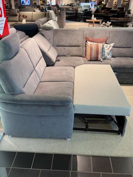 BemerkungEntdecken Sie den ultimativen Komfort und die Vielseitigkeit der Elementgruppe in elegantem Belle Grey. Diese hochwertige Sitzmöbelgarnitur aus edler Mikrofaser lädt mit ihrer großzügigen Stellfläche von etwa 260x277cm zum Verweilen ein. Der integrierte Federkern garantiert eine optimale Sitzqualität, während die inklusiven Relaxrücken und die verstellbare Kopfstütze entspannte Stunden versprechen. Funktionalität trifft auf Design: Die Schlaffunktion und der praktische Bettkasten bieten zusätzlichen Raum und machen die Garnitur zum idealen Begleiter sowohl für gemütliche Fernsehabende als auch für spontane Übernachtungsgäste. Der zugehörige Sessel, mit einer Größe von etwa 88x96x89cm, ergänzt die Gruppe perfekt. Die robusten Metallfüße verleihen der Garnitur eine stabile Basis und stilvolle Akzente. Als zusätzliches Highlight kommen zwei Kissen im Bezug Famosa Wine, die mit ihrem warmen Farbton einen harmonischen Kontrast setzen. Die Elementgruppe überzeugt als auffälliger Blickfang, der durch seine echte Rückenbezogenheit von allen Seiten aus schön anzusehen ist.