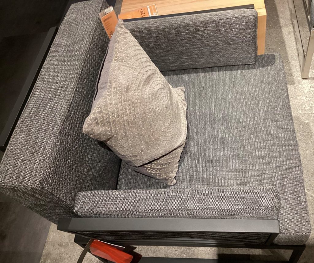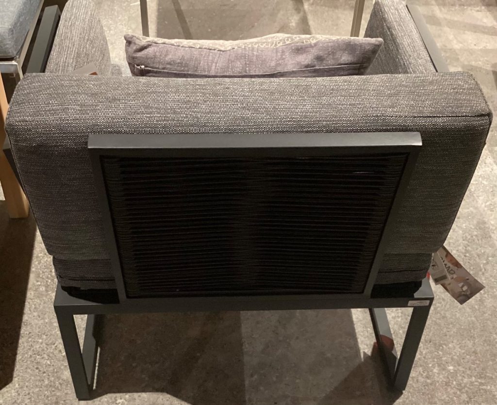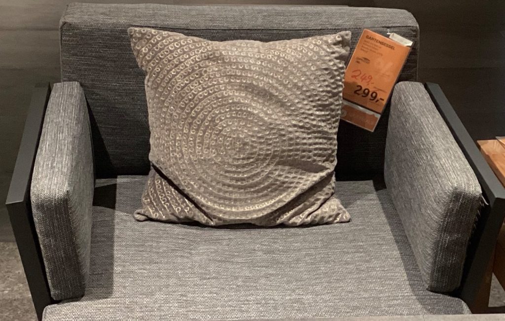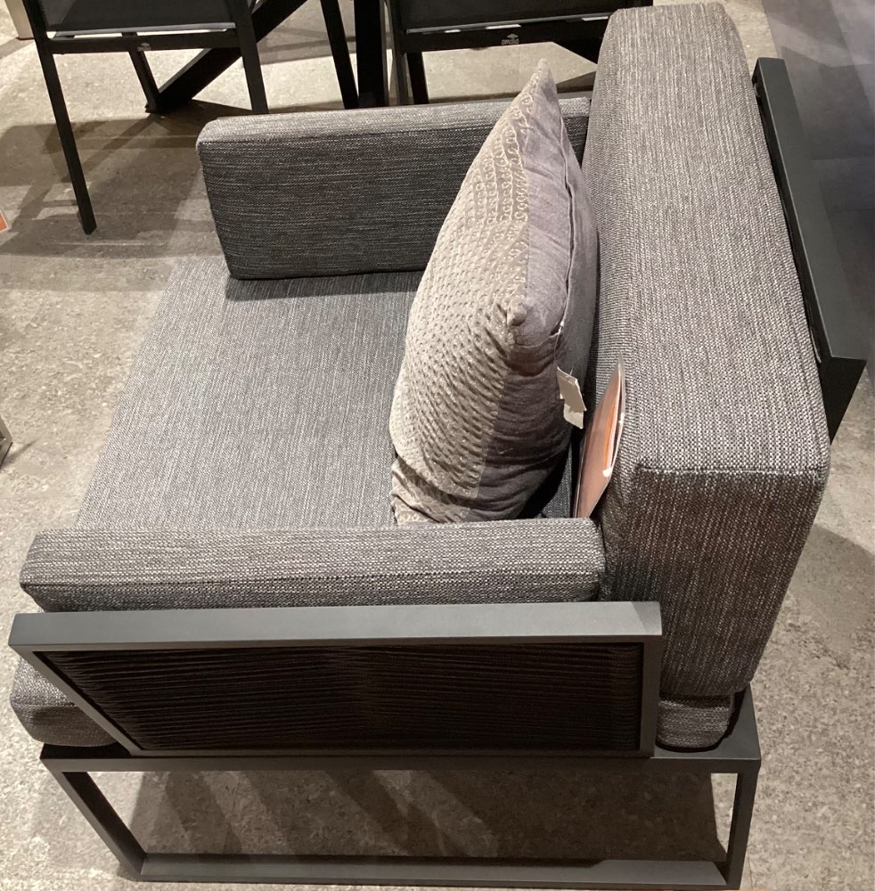 Bemerkung Es handelt sich um ein AUSSTELLUNGSSTÜCK! ℹ️ Besondere Details: Belastbarkeit bis max. 120 kg Dunkelgrauseilbe. Schwarz Anthrazitauflage ℹ️ Spezifikation: Es handelt sich um Ausstellungsware! ℹ️ Abmessungen: Ca. 83x76x83 cm ℹ️ Farbe und Material: Farbe: Schwarz/Anthrazit Material: Webstoff ❗️Wichtige Information Lieferung: Nur Selbstabholung und Selbstabbau. Zwischenverkauf vorbehalten. Ohne Dekoration Haben wir Ihr Interesse geweckt, dann kommen Sie gerne vorbei oder kontaktieren Sie uns telefonisch oder schriftlich. Die Antwortzeiten sind an die Geschäftszeiten gebunden, bitte haben Sie Verständnis, dass es einen Moment dauern kann. Mo.-Sa. : 10:00 bis 19:00 Uhr