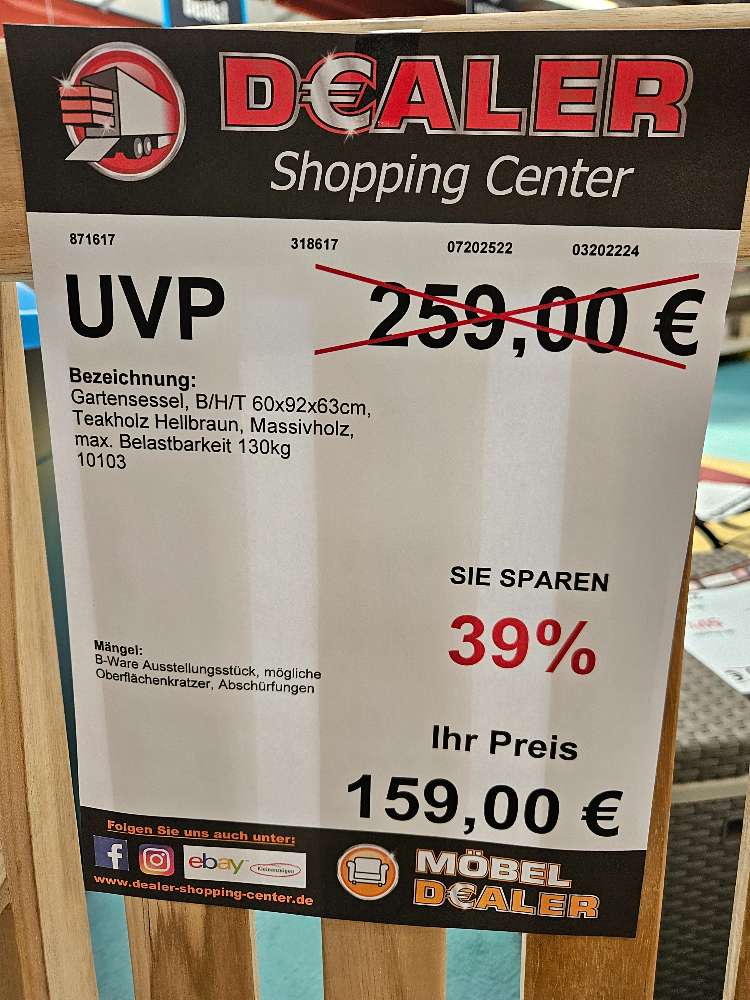 Gartensessel Teakholz massiv braun statt 259€