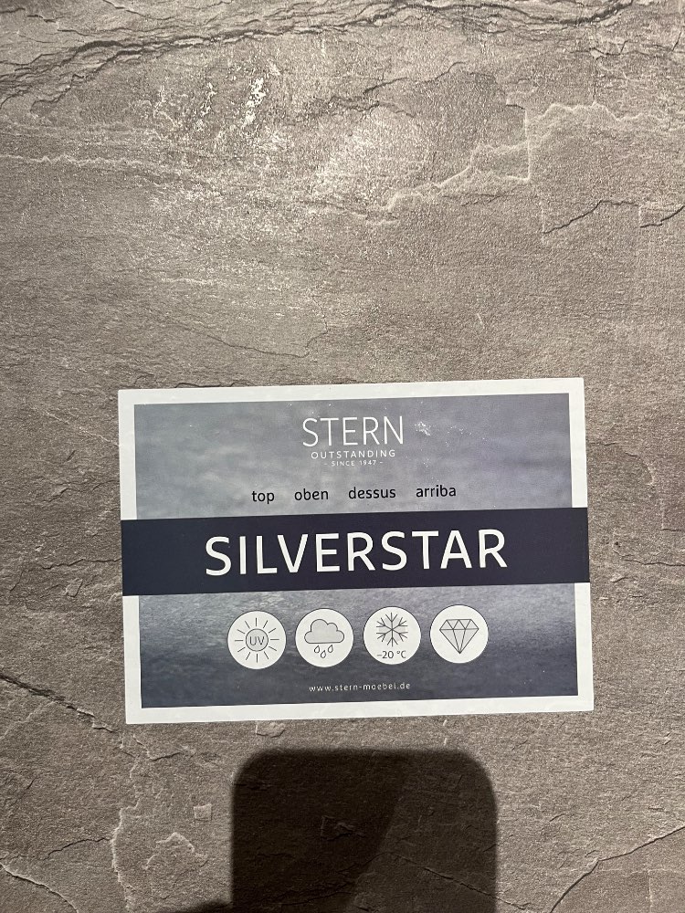 Gartentisch Penta 220x100cm von STERN Gestell schwarz matt Tischplatte Slate Stone Gestell aus Aluminium HPL Tischplatte ohne Dekoration