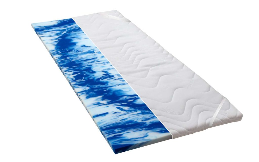 BemerkungGelschaum-Topper mit durchgehenden Stretch-Doppeltuch-Bezug in weiß, Gel-Effekt-Schaum, abnehmbar und waschbar bis 60° C, umlaufendes Klimaband als Steg, Liegefläche ca. 90 x 200 cm.