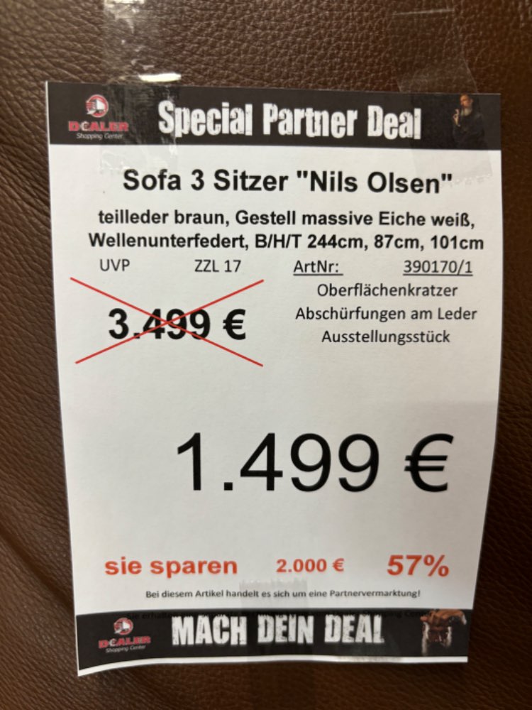 (GL 8) WSV Sofa 3-Sitzer Leder braun Polstergarnitur statt 3499€