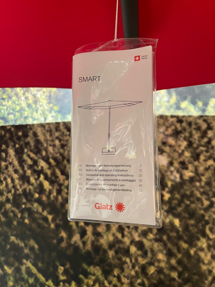 Bemerkung Glatz Smart 210x150cm Gestell anthrazit Bezug Campari 801 Kippgelenk Mast höhenverstellbar kippbar und 360 Grad drehbar Gestell aus Aluminium ohne Dekoration Schutzhülle optional bestellbar