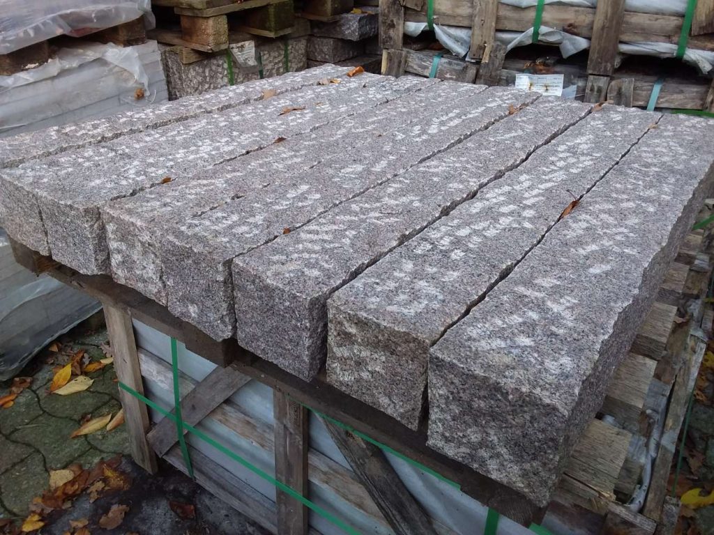 Granit Palisaden 12x12x10 rötlich-grauer Naturstein Outlet Seltra