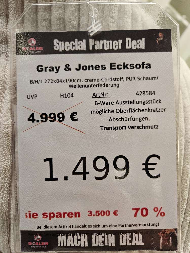 Grey & Jones Ecksofa Cordstoff Creme statt 4999€