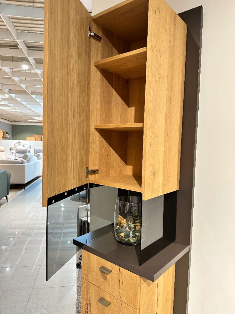 BemerkungSchick und edel ist die Vitrine aus Balkeneiche natur. Das abgedunkelte Glas der Vitrine in Kombination mit dem Holz ergeben optisch ein gemütliches Ambiente.