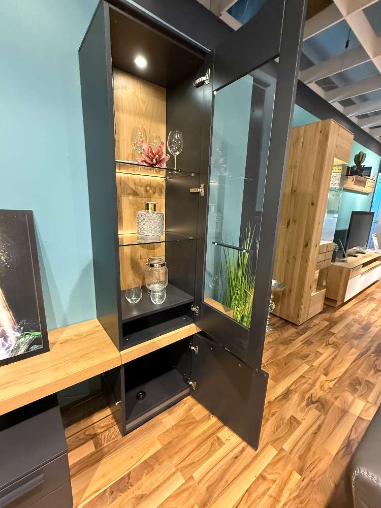 Gwinner Wohnwand in Lack anthrazit mit Beleuchtung