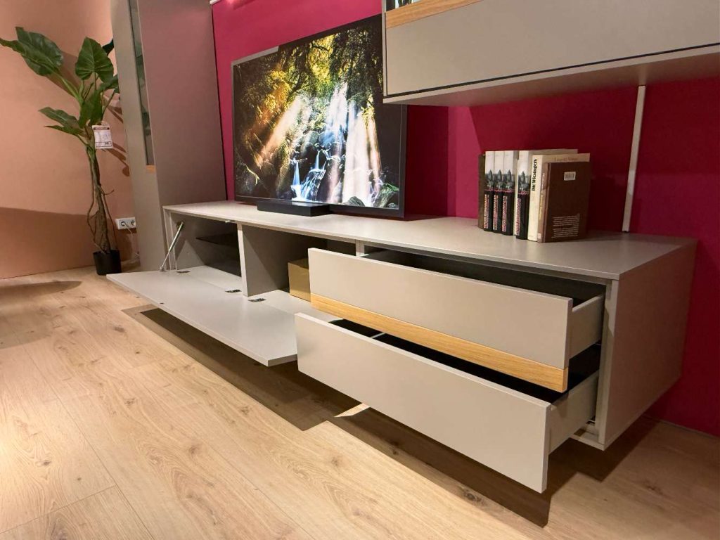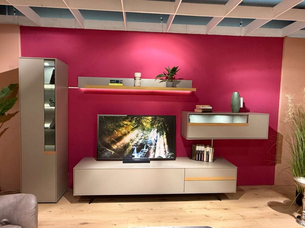 Gwinner Wohnwand in Lack grau mit Eicheakzent inkl Beleuchtung