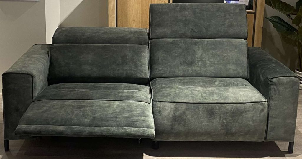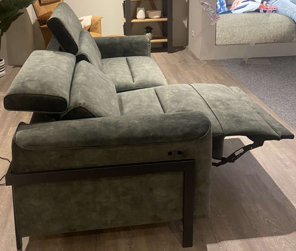 3-er Sofa Busan, mit elektrischer Relaxfunktionauf der linken Seite, Taschenfederkern und schwarzen Design Füßen
