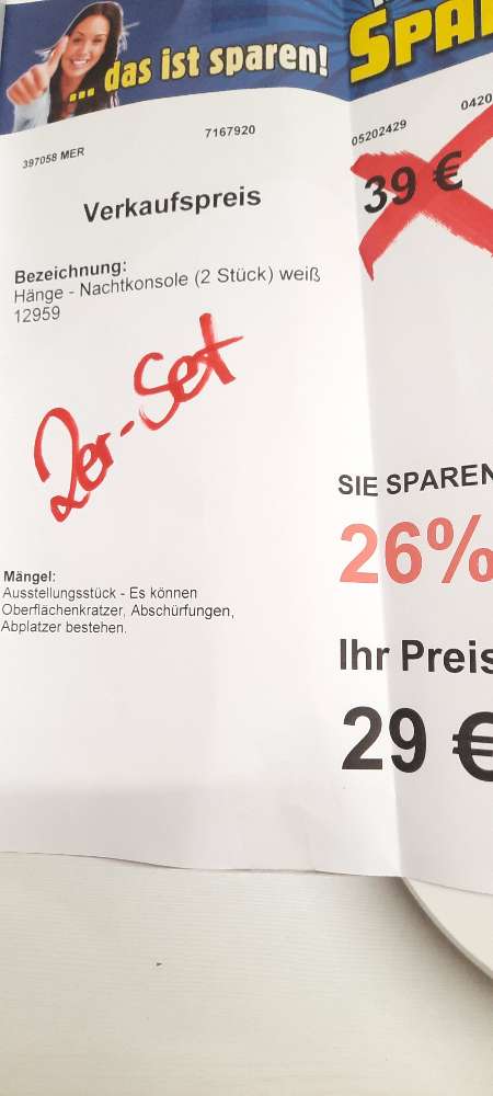 Hierbei handelt es sich um ein Angebot von Möbel Spar.Standort des Artikels ist Merseburg.Details wie technische Daten (Maße etc)oder Schäden entnehmen Sie dem Bild mit Preisschild