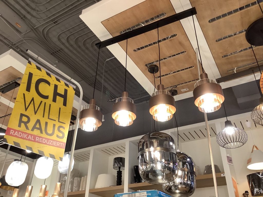 Es ist ein Ausstellungsstück, befindet sich im EG- Leuchtenabteilung XXXLutz-Heidelberg