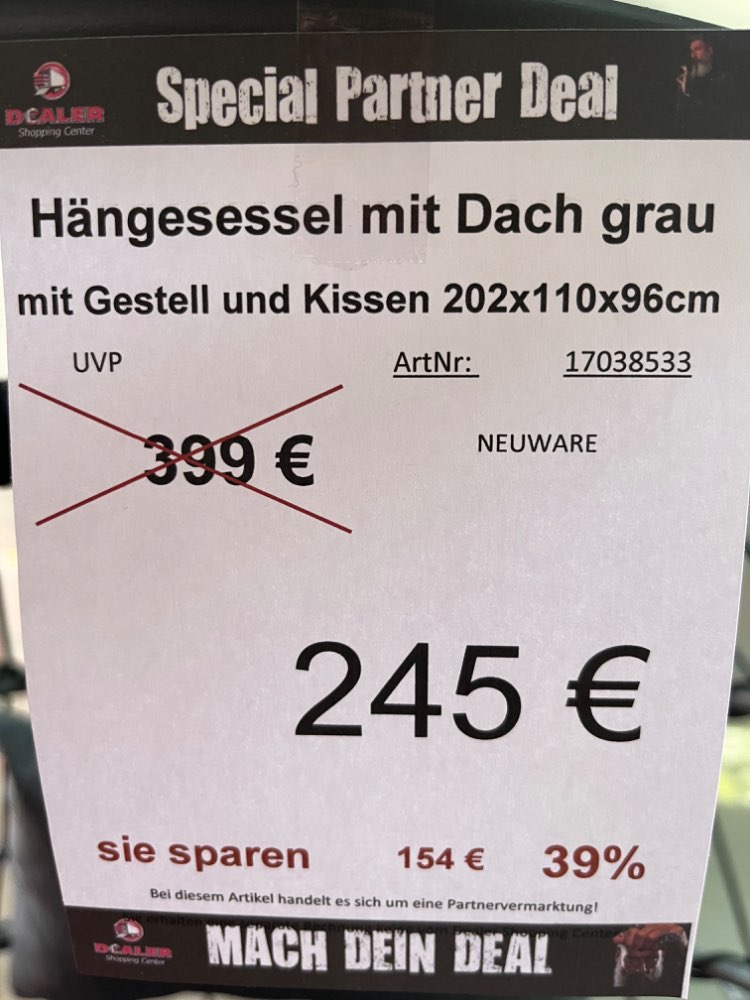 Bitte telefonisch erfragen ob der Wunschartikel noch verfügbar ist. Zwischenverkauf vorbehalten. Die Besichtigung, der Verkauf und die Abholung erfolgt ausschließlich bei unserem Handelspartner.