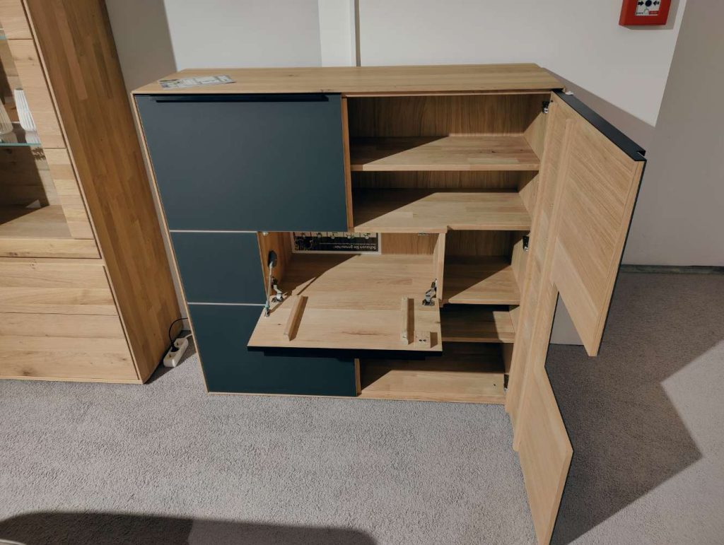 BemerkungDas Highboard Nevada beeindruckt mit seiner schlichten Eleganz und erstklassigen Verarbeitung. Gefertigt aus hochwertigem Massivholz, strahlt das Möbelstück in der warmen und einladenden Farbnuance Asteiche bianco, die perfekt mit den anthrazitfarbenen Akzenten harmoniert. Diese gelungene Farbkombination verleiht dem Highboard nicht nur einen zeitlosen Look, sondern macht es auch zu einem vielseitigen Begleiter in unterschiedlichen Einrichtungsstilen.