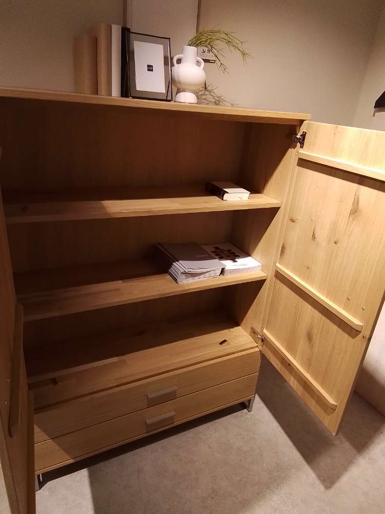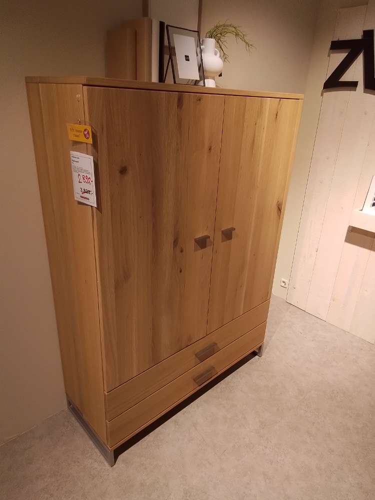 ca. 110x153x42cm, rustikale Asteiche Hartwachsöl Bianco, Metallbügelsockel und Metallgriff in Edelstahl