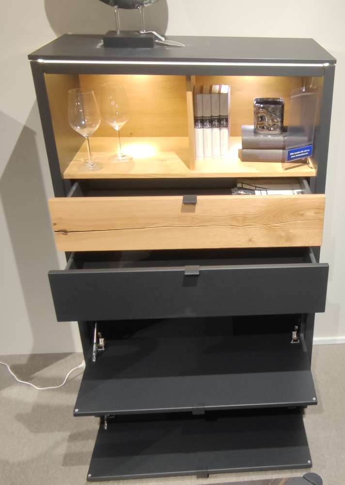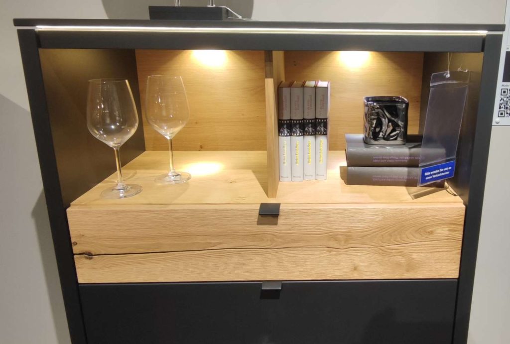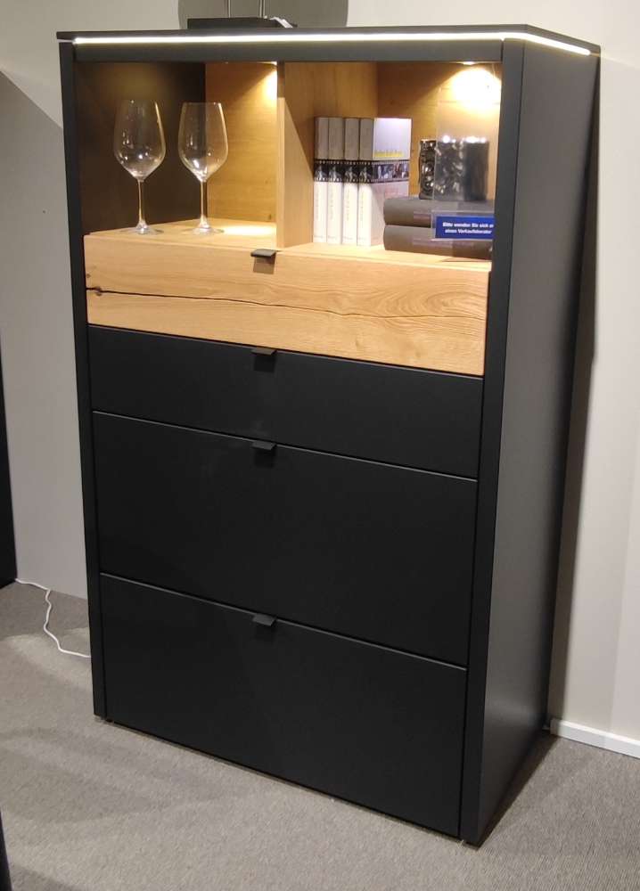 BemerkungDas Highboard "Game" von VENJAKOB besticht durch seine elegante Erscheinung und hochwertige Verarbeitung. Gefertigt aus echtem Holz und mit einer lackierten Oberfläche in stilvollem Anthrazit versehen, fügt sich dieses Möbelstück nahtlos in jedes moderne Wohnambiente ein. Es handelt sich um ein Ausstellungsstück, das seinen ästhetischen Wert bereits unter Beweis gestellt hat. Mit seinen Maßen von ca. 87x140x43 cm bietet das Highboard ausreichend Stauraum, ohne dabei zu viel Platz einzunehmen. Die klare Linienführung und das zeitlose Design machen es zu einem echten Hingucker und einem unverzichtbaren Element für Ihre Wohnkultur. Auch die Funktionalität kommt nicht zu kurz, da die Größe ideal ist, um Alltagsgegenstände stilvoll zu verstauen. Die sorgfältige Verarbeitung und das edle Design garantieren, dass "Game" von VENJAKOB eine langlebige Bereicherung für Ihr Zuhause darstellt.