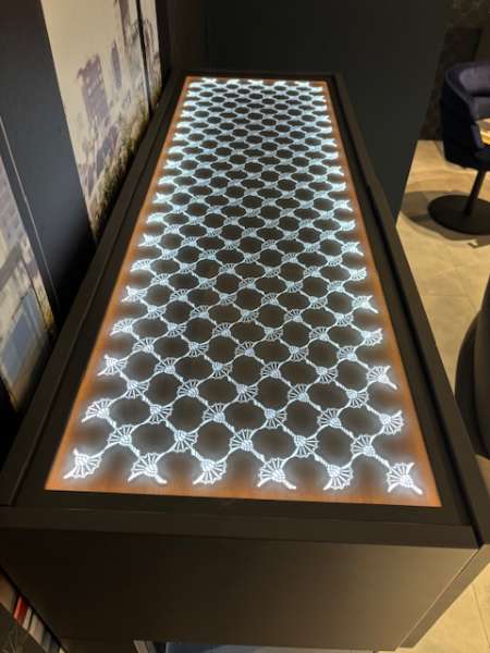 Funktion inklusive Rückwandbeleuchtung und beleuchtetes Glasblatt im Kornblumendesign