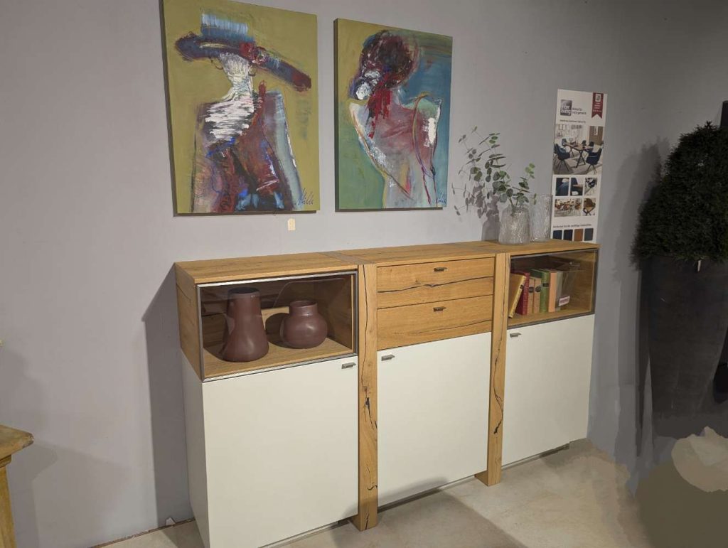 Ob im Wohnzimmer, Essbereich oder Büro – das Highboard ist vielseitig einsetzbar und unterstreicht durch sein durchdachtes Design und die hochwertige Verarbeitung den Anspruch an Qualität und Stil. Als Ausstellungsware überzeugt es nicht nur durch Funktionalität, sondern auch durch seine ästhetische Ausstrahlung. Die Lack-Holz-Kombination verleiht dem Möbelstück eine zeitlose Eleganz, die sich harmonisch in unterschiedlichste Einrichtungsstile integrieren lässt.