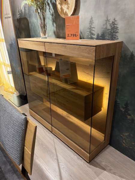 BemerkungDer LAGO von Hartmann präsentiert sich in eleganter Form mit einer ansprechenden Kombination aus Eiche und Glas in einem stilvollen Anthrazitton. Die hochwertige Verarbeitung des Eichenholzes verleiht dem Stück nicht nur eine natürliche Wärme, sondern auch eine zeitlose Eleganz, die sich mühelos in verschiedene Einrichtungsstile integrieren lässt. Die Glasflächen im Anthrazitton setzen moderne Akzente und schaffen ein ästhetisch ansprechendes Gesamtbild. Die integrierte Beleuchtung unterstreicht das Design zusätzlich und sorgt für eine behagliche Atmosphäre in jedem Raum. Mit den Maßen von 127/119/39 fügt sich der LAGO perfekt in jedes Ambiente ein und bietet dabei eine ausdrucksstarke Präsenz. Als Ausstellungsware zeigt dieses Möbelstück seine Funktionalität und Vielseitigkeit. Erleben Sie mit dem LAGO von Hartmann ein wahres Highlight aus erstklassigem Material und raffiniertem Design, das Ihren Wohnraum bereichern wird.