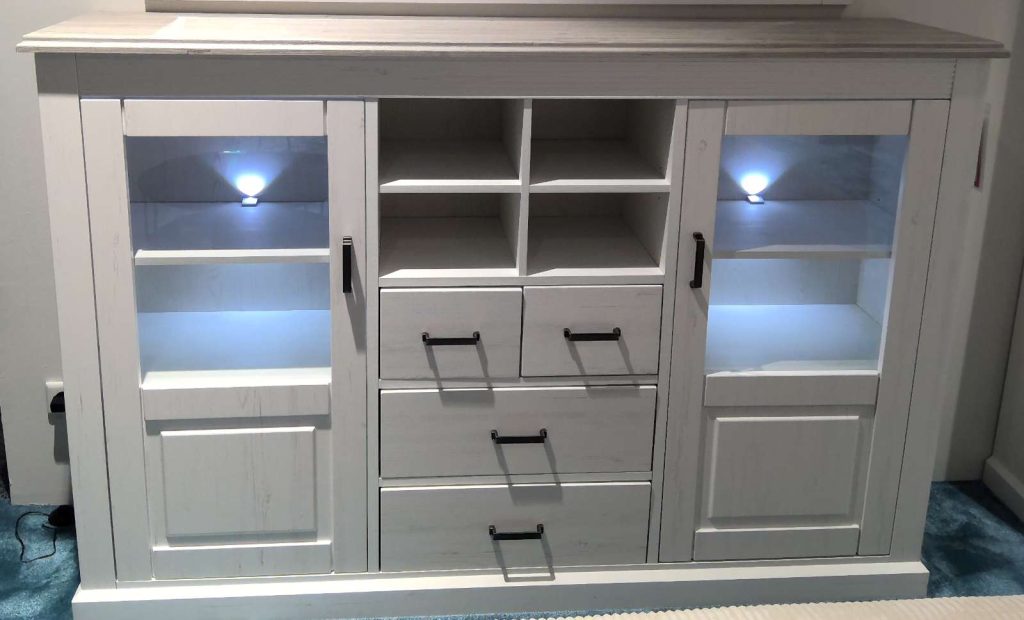 Highboard mit Beleuchtung, Pinie weiß