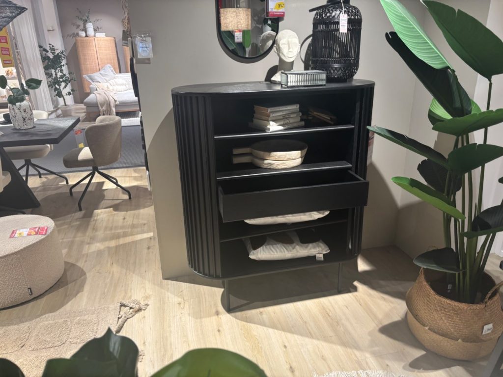 BemerkungHighboard aus Holzwerkstoff (MDF) mit Echtholzfurnier in Eiche schwarz lackiert,