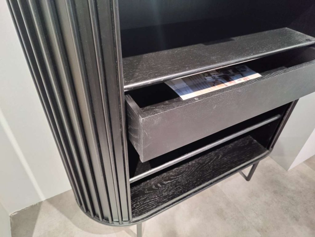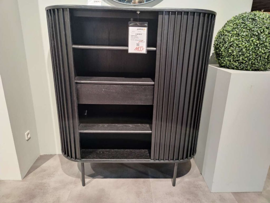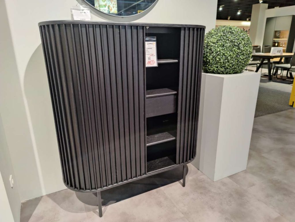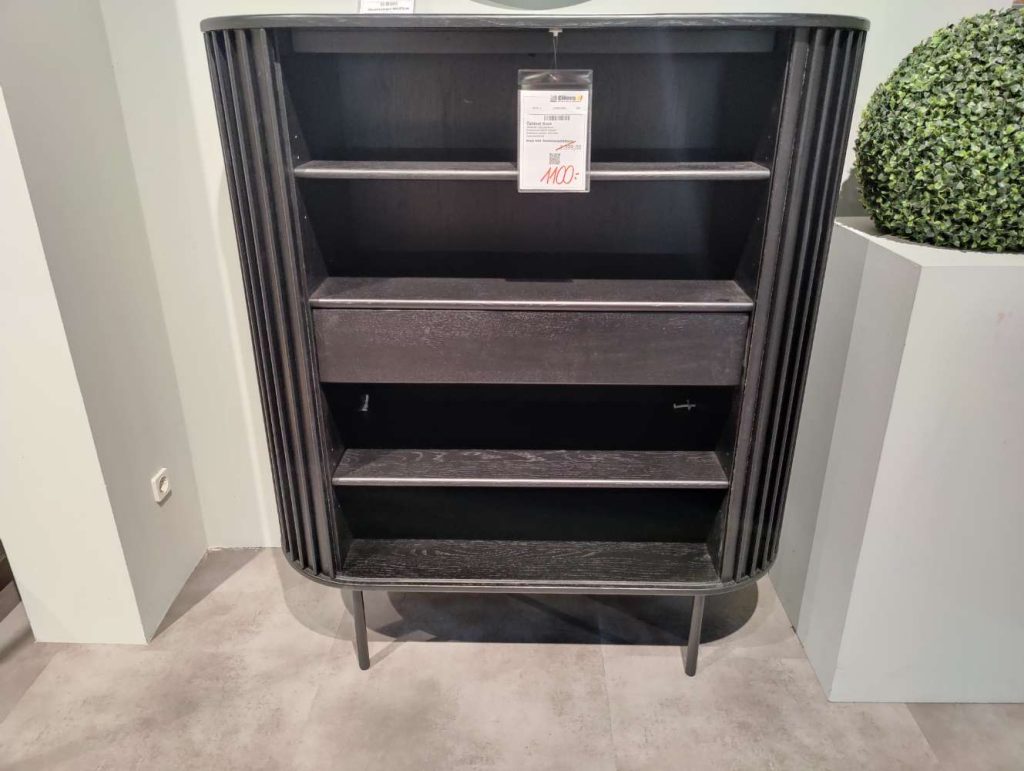 Die praktischen Schiebetüren und der Schubkasten mit Soft-Close-Funktion sorgen für komfortable Handhabung und bieten ausreichend Stauraum für Ihre persönlichen Gegenstände. Auf den stabilen schwarzen Metallbeinen stehend, verleiht das Highboard jedem Raum eine moderne Note. Mit den Maßen von 110x125x45 cm ist es kompakt genug, um in unterschiedlich großen Räumen Platz zu finden, bietet dabei aber dennoch großzügige Unterbringungsmöglichkeiten. Susa ist als Ausstellungsware ein Zeugnis geschmackvoller Handwerkskunst und bringt sowohl Ästhetik als auch Funktionalität in Ihren Lebensbereich.