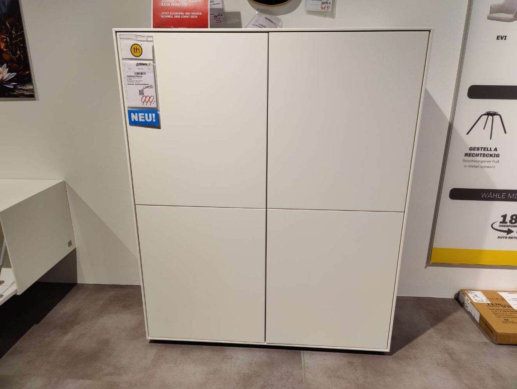 BemerkungDas Highboard Moiano von Trendhopper vereint modernes Design mit praktischer Funktionalität und bringt stilvolle Eleganz in jeden Wohnraum. Dieses Ausstellungsteil präsentiert sich in einem strahlenden Weiß, das durch eine glänzende Lackoberfläche veredelt wird und so für eine zeitlose Ästhetik sorgt. Gefertigt aus hochwertigem Holzwerkstoff, überzeugt Moiano durch seine robuste Bauweise und die sorgfältige Verarbeitung.