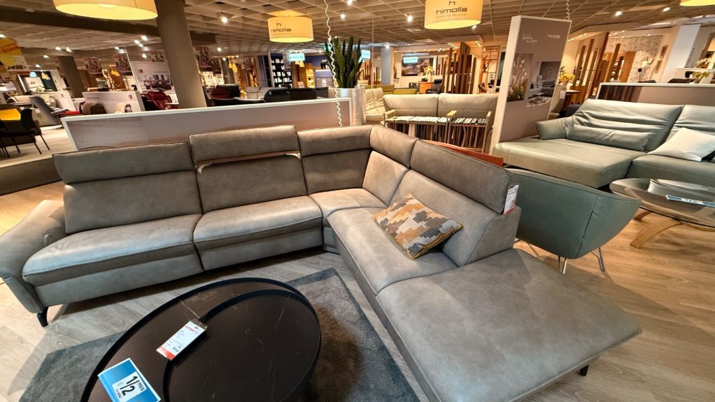 Sofa 3- sitzig, Armiehne links (2er Sitzeinteilung) inkl. Wall-Free-Beschlag und Kopfteilverstellung manuelt im äußeren Sitz inkl. manueller Kopfteilver-stellung im inneren Sitz inkl. Armteilverstellung