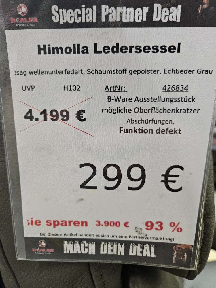 Bemerkung Mach deinen Deal! Hierbei handelt es sich um ein Angebot vom Dealer Shopping Center! Standort des Artikels ist Zeitz Kretzschau. Details wie technische Daten oder Schäden entnehmen Sie dem Bild mit Preis. BEZAHLUNG:  Bargeld, EC-Kartenzahlung, Kreditkarte oder 0% Finanzierung mit Consors Bank. RESERVIERUNG: Bei einem längeren Anfahrtsweg und vorheriger Absprache mit dem Verkäufer vor Ort ist eine Reservierung, für die Dauer der Fahrt -maximal  jedoch für 4 Stunden- möglich. Von Sonderanfragen bitten wir abzusehen. WICHTIG Bitte telefonisch erfragen ob der Wunschartikel noch verfügbar ist. Zwischenverkauf vorbehalten. Die Besichtigung, der Verkauf und die Abholung erfolgt ausschließlich bei unserem Handelspartner. Dealer Shopping Center , 06712 Kretzschau Zeitz Grana, Leipziger Straße 18, Ihren Ansprechpartner erreichen Sie telefonisch unter 015906377060 Öffnungszeiten : MO-FR 9:00-18:00 Uhr, SA 9:00 – 14:00 Uhr. Alle Inserate sind unverbindlich. Preisirrtümer und Änderungen vorbehalten. Abbildung ähnlich. Mehrere Rabattaktionen sind nicht kombinierbar. Weitere sichtbare Artikel können bei Verfügbarkeit zusätzlich erworben werden!