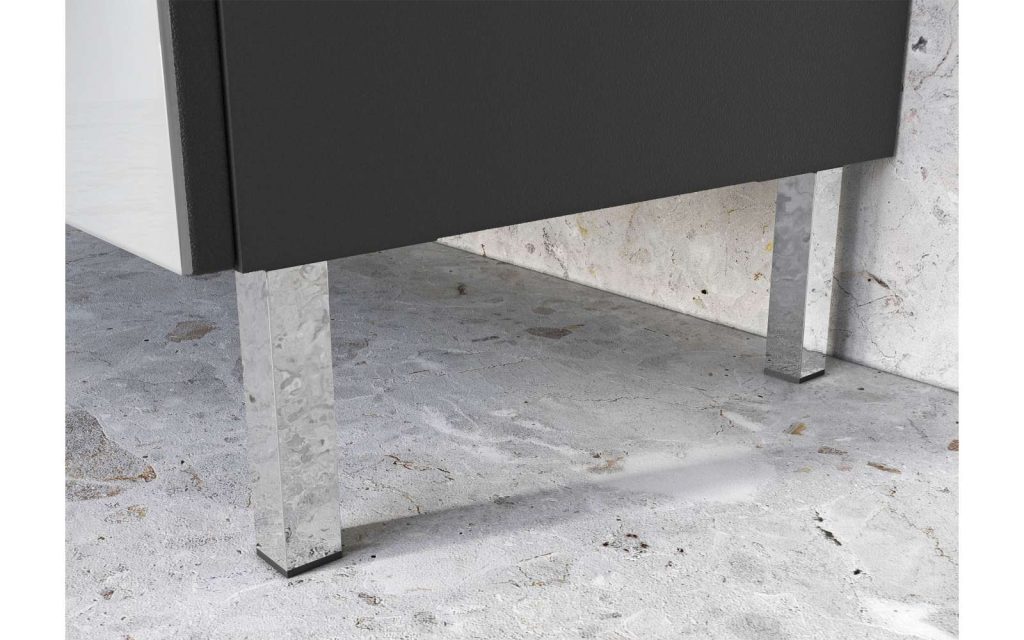 BemerkungKorpus in graphit matt Melaminharzbeschichtet mit ABS-Kanten, Front aus Glas in silbergrau, Kantengriff aus Metall in chromfarben, rechteckige Füße aus Metall in chromfarben, 2 Türen inklusive Türdämpfung, 1 Schubkasten mit Selbsteinzug, 3 verstellbare Einlegeböden, 2 offene Fächer, B/H/T ca. 34 x 183 x 34 cm.