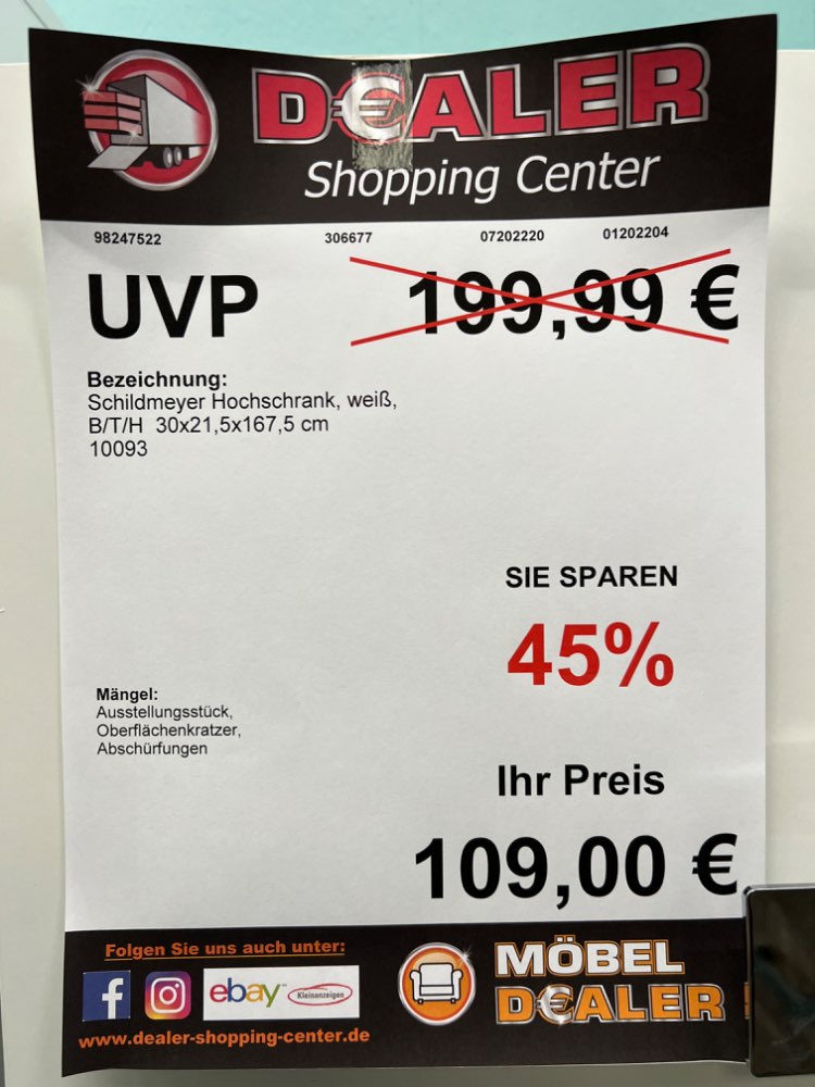 Hochschrank weiß / Schrank / Badschrank statt 199,99€