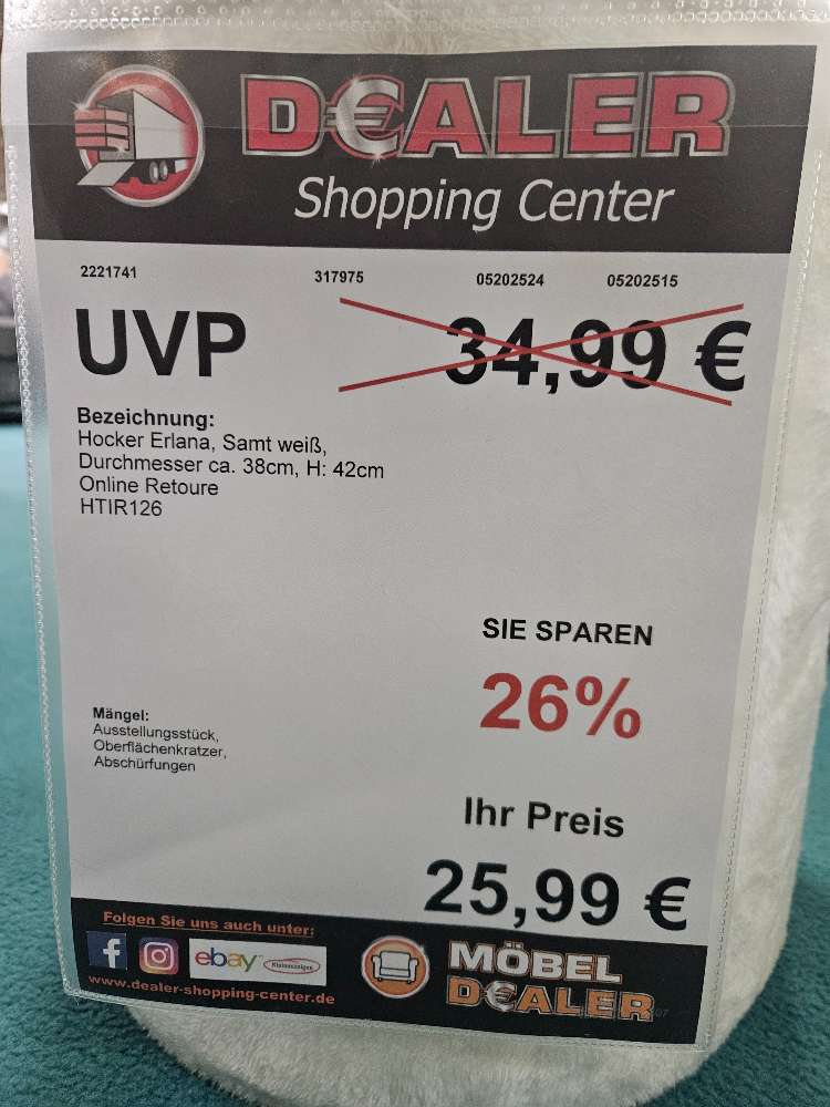 Hocker Erlana Samt Weiß statt 34,99€