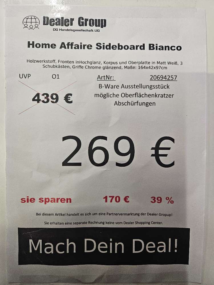 Home Affaire Sideboard Kommode Bianco Weiß statt 439€