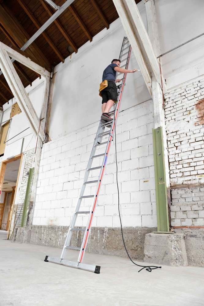 HerstellerkurzbeschreibungLanglebige Holme aus hochwertigem Strangpressprofil, Bequeme, breite Sprossen mit 30 mm Sprossentiefe, Sprossen aus Walzprofil, Massive Führungsbeschläge aus Stahl, Handliches Seil (Ø 10 mm) zur sicheren Höhenverstellung, Mit Wandlaufrollen zum komfortablen Ausfahren der Leiter, Alle Größen mit Traverse.