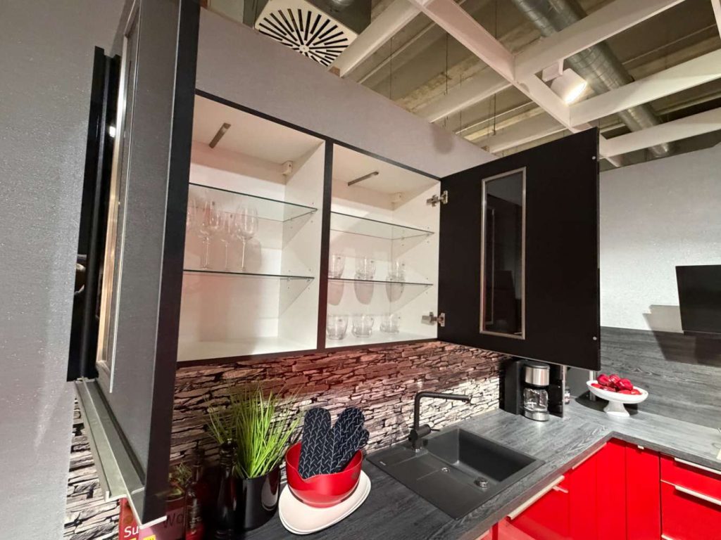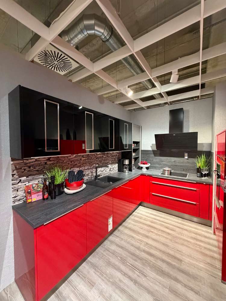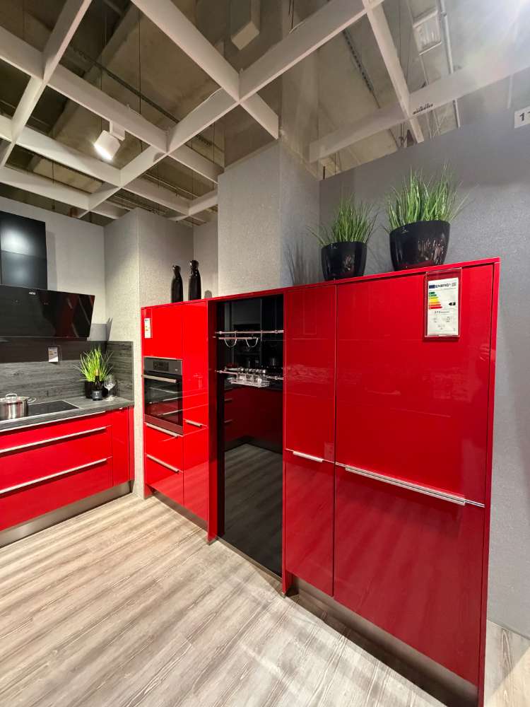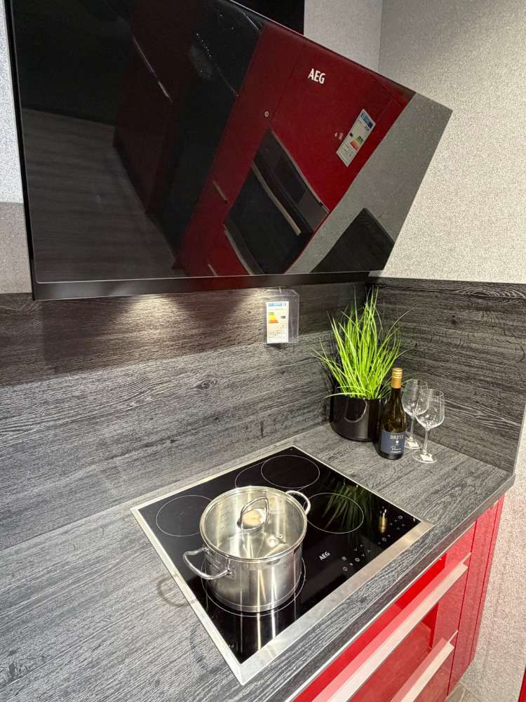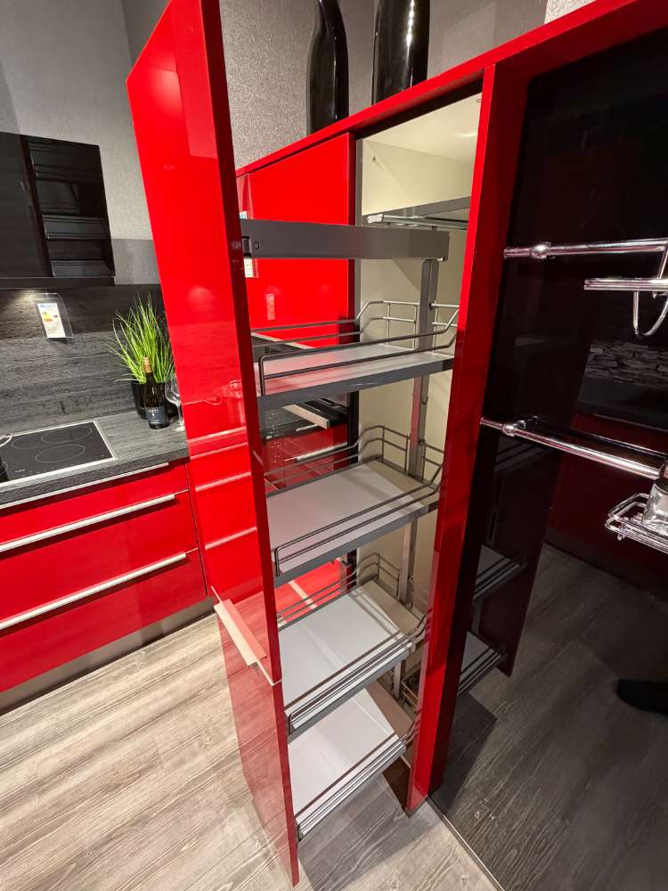 Einbauküche Smart4050/54-116 Front: Rot Hgl. Korpus: Rot Hgl. Griff: Metallgriff APL: Kamineiche