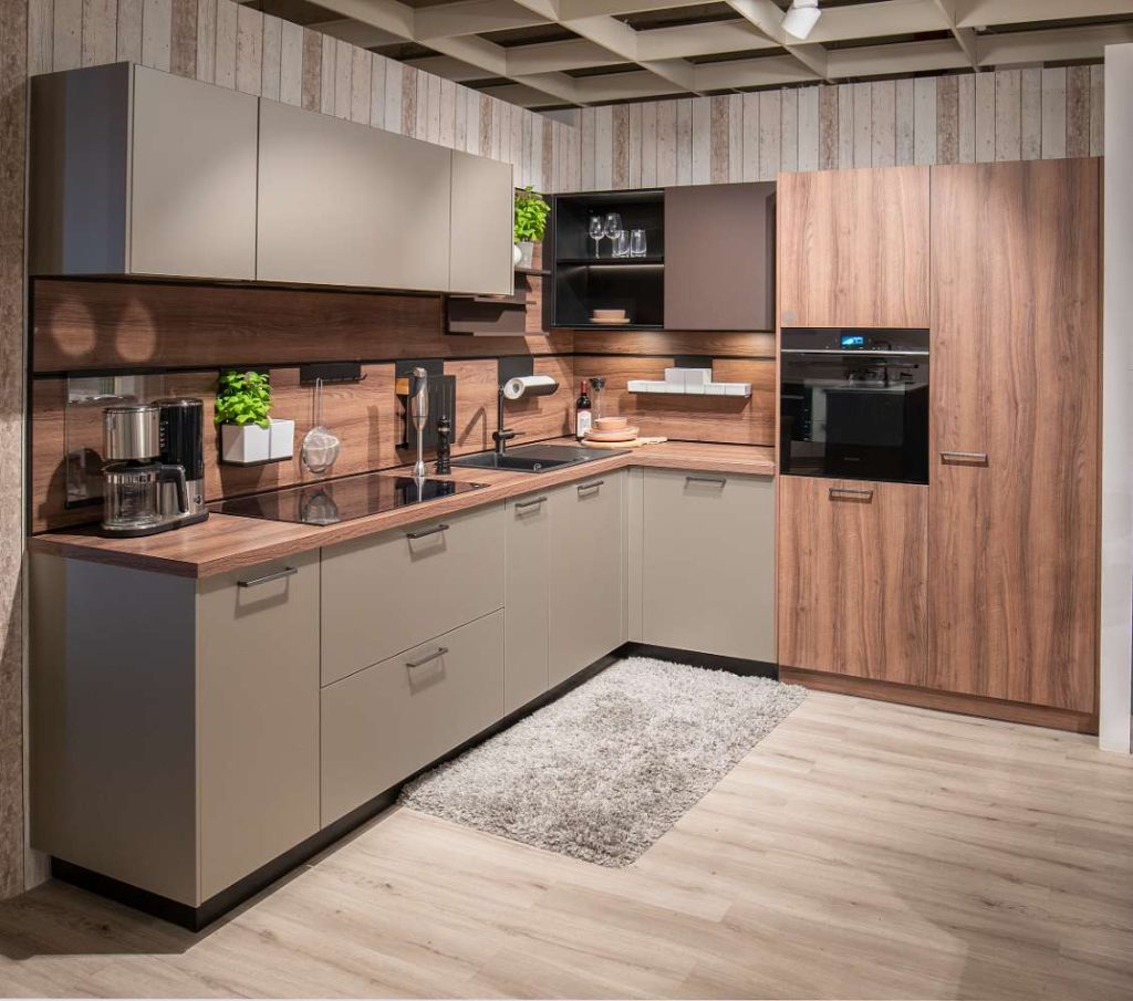 BemerkungDie Sigma Taupe Metall von INTERLINE präsentiert sich als beeindruckendes Beispiel moderner Küchengestaltung. Diese Ausstellungsküche besticht durch ihre eleganten Fronten in der zeitgemäßen Farbe Taupe Metall, die in perfekter Harmonie mit der warmen Holzoptik ergänzt werden. Dies verleiht dem Raum sowohl einen stilvollen als auch gemütlichen Charakter, der sich nahtlos in jedes Zuhause einfügt.