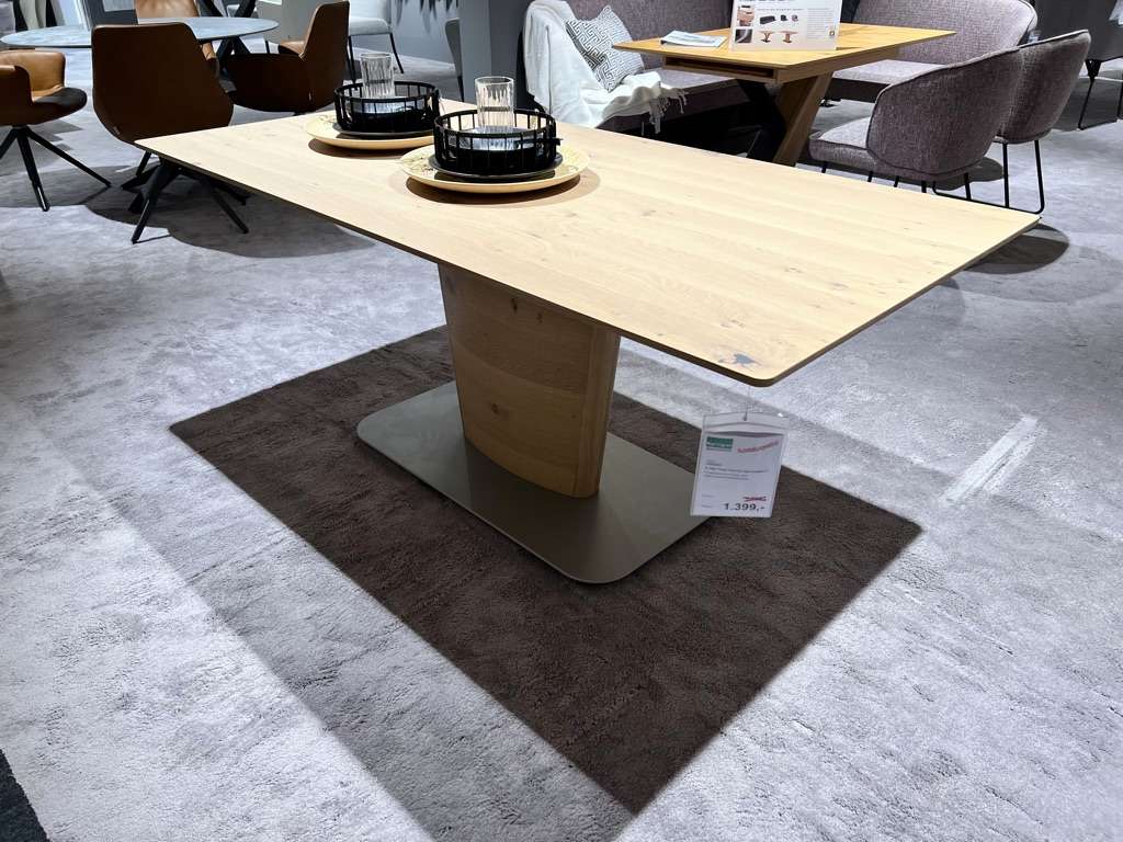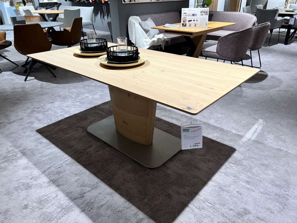 Platte: Asteiche bianco furniert lackiert Fuß: Asteiche bianco lackiert / Edelstahlfarbig Größe: 180x75x90cm