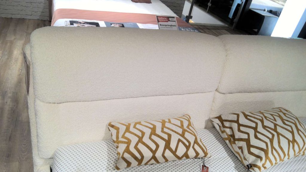 BemerkungDas Polsterbett Interliving 1416 strahlt in der eleganten Farbgebung Kama Natur und verleiht Ihrem Schlafzimmer eine moderne, aber zugleich warme Atmosphäre. Als Ausstellungsstück bietet es die herausragende Qualität und den Komfort, den Sie von einem renommierten Hersteller erwarten können, zu einem attraktiven Preis. Die sorgfältige Verarbeitung und die Verwendung hochwertiger Materialien sorgen dafür, dass dieses Polsterbett nicht nur optisch beeindruckend ist, sondern auch hohen Liegekomfort bietet. Sein zeitloses Design fügt sich nahtlos in unterschiedlichste Einrichtungsstile ein und bietet Ihnen einen gemütlichen Rückzugsort zum Entspannen und Träumen. Erleben Sie Schlafkomfort neu definiert mit dem Interliving 1416 in Kama Natur. Ein echtes Highlight in jedem Schlafzimmer, das mit seiner stilvollen und funktionalen Ästhetik überzeugt.
