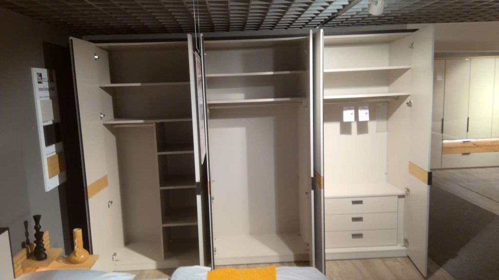 MaßeDoppelbett ca. 180 x 200 cm, Kleiderschrank ca. 302 x 223 x 62 cm, Kommode ca. 159 x 85 x 46 cm, Bettbank ca. 124 x 41 x 36 cm