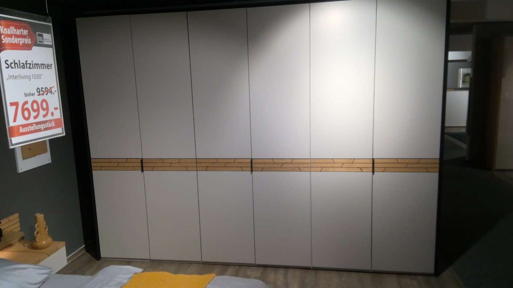 BemerkungDas Interliving Schlafzimmer-Set 1030 verbindet modernes Design mit natürlicher Eleganz und verwandelt Ihr Schlafzimmer in einen stilvollen Rückzugsort. Die Kombination aus lichtgrauem Mattlack und geölter Casa Wildeiche unterstreicht den zeitlosen Charakter der Möbelstücke. Das großzügige Doppelbett mit Maßen von ca. 180 x 200 cm lädt zum Entspannen ein und bietet ausreichend Platz für erholsame Nächte. Ergänzt wird das Ensemble durch einen geräumigen Kleiderschrank, der mit Maßen von etwa 302x223x62 cm viel Stauraum für Ihre Garderobe bietet.