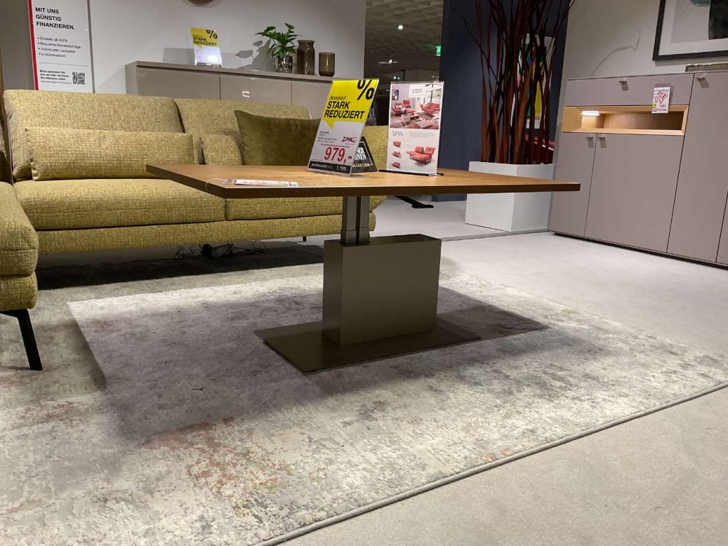 Die integrierte Hubmechanik ermöglicht eine mühelose Höhenverstellung, sodass Sie ihn flexibel an Ihre Bedürfnisse anpassen können. Dies macht den "Infinity" besonders vielseitig, sei es als Schreibtisch oder als moderner Beistelltisch. Die edelstahlfarbige Bodenplatte verleiht dem Tisch nicht nur Stabilität, sondern auch einen zeitlosen, stilvollen Touch.