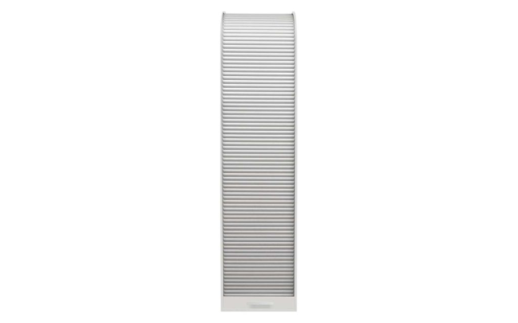 Jalousieschrank, weiß matt, Korpus in weiß matt und Jalousie in weiß, Griff aus Metall, 3 Ablageflächen. B/H/T ca. 46 x 192 x 44 cm.