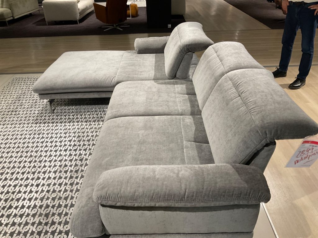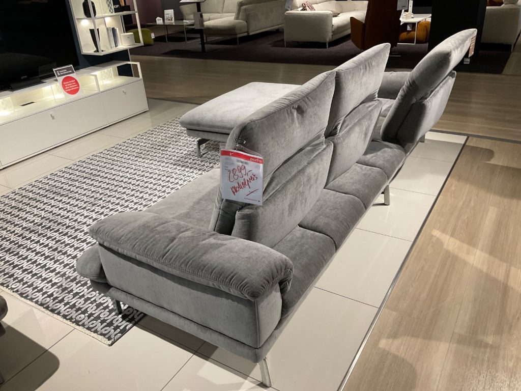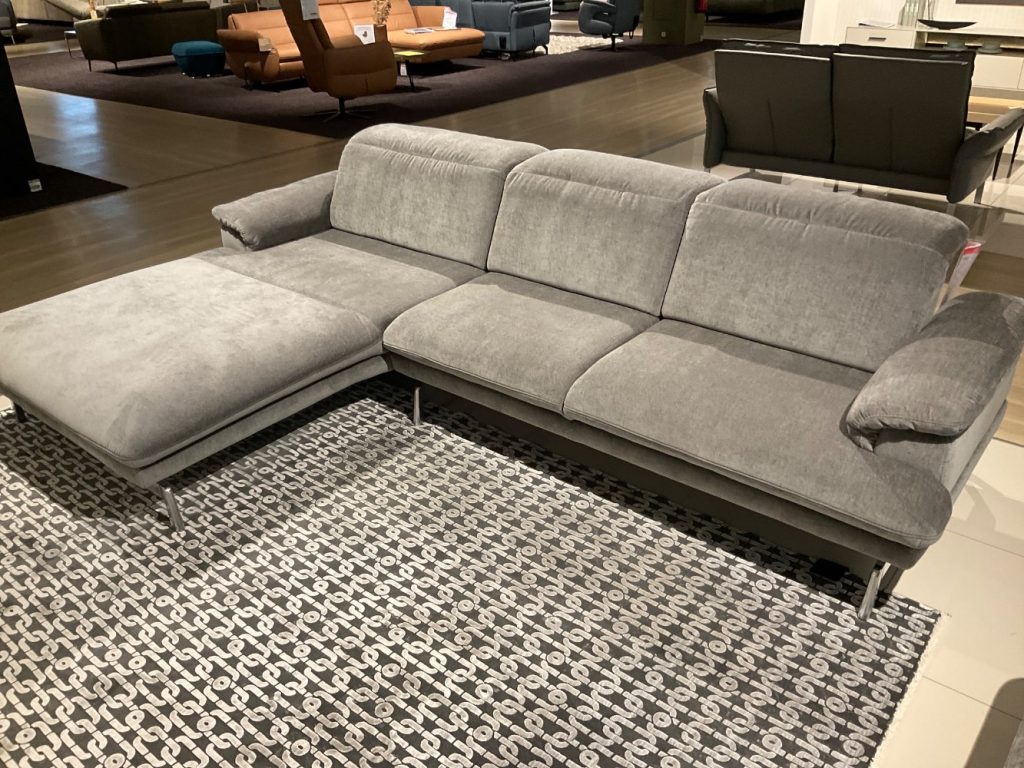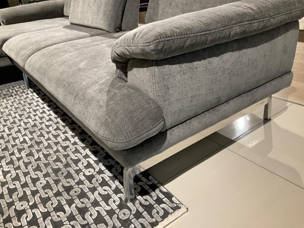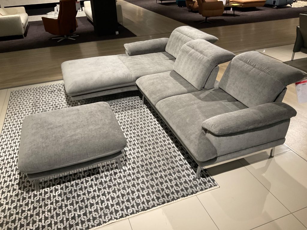 Bemerkung Stellmaß Garnitur ca. 197-223 x 394 cm und Hocker 92 x 92 cm , Stoff. Stone, Kufe Alu poliert. Sitz Superlative soft. Da Ausstellungsstück sind leichte Gebrauchsspuren möglich. Die Ware kann bei Porta in Gütersloh besichtigt werden.